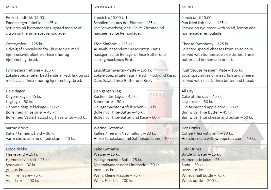 Ingen bordreservation under 8 personer. Reservationer fra 8 personer og op bedes sendt til fyr@bovbjergfyr.dk med oplysninger om dato, tidspunkt, antal personer og et telefonnummer. Send mail minimum én dag i forvejen. Din reservation er først registreret, når du har modtaget en bekræftelse via mail.